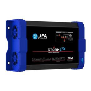 A Fonte e Carregador Storm Lite JFA é a melhor opção para alimentação do seu sistema de som, utilizando ou não baterias, com ótimo custo benefício. Seu diferencial é possuir a voltagem de até 15.2V, com a tensão para equalização dos vasos internos da bateria, única do mercado.