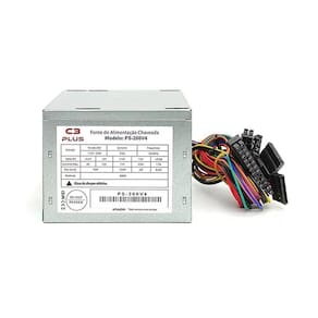 Fonte c3tech c3plus ps-200v4 200w 115v/230v Com a fonte de alimentação c3tech ps-200v4 você pode garantir a corrente contínua e estável de seu computador desktop e otimizar o funcionamento de seus componentes. Controle de temperatura Através de seu sistema de refrigeração, você poderá manter a temperatura ideal de seus componentes e evitar o superaquecimento. - marca: c3tech - modelo: ps-200v4 - watts reais: 200w - espessura do chassi: 0.4mm - cor: sgcc - entrada: ca o - comutador de e / s - sel. Comutador: 115v / 230v - fan: 8cm - cor do fan: preto - grelha de fan: não Cabo dc e conectores: - comprimento do cabo: 400mm - medidor de cabo: 20 - escudo / tubo: x - conectores: 20 + 4p / 4p / (ide + sata) 2 - cor dos conectores: preto - certificação pcb / inside: ce emi: não - segurança de certificação ce: não - controle de temperatura da velocidade do ventilador: não - pfc: não - conformidade com rohs: não - cabo de alimentação: não Conteúdo da embalagem: - fonte de alimentação para pc ,c3plus, 200w, 115v/230v - ps-200v4 Garantia do fornecedor - 12 meses Itens inclusos: - fonte c3 plus, 200w - ps-200v4