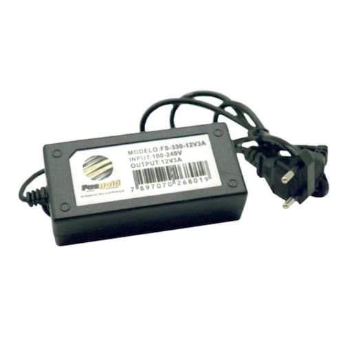 Modelo: FS-329 Especificações: Fonte 12v/10A bivolt automático Modelo: Fonte 12v/10A Tensão de entrada: 90 ~ 260 VAC Automático Tensão de saída: 12 Vdc Corrente de saída: 10A (120 Watts) Proteções: PSI (Protetor contra surto e interferência); Smart Chip (Chip inteligente contra sobrecarga). Garantia: 18 meses, troca expressa.
