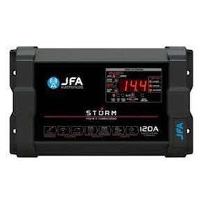 Fonte Carregador JFA 120A Slim Bivolt com Voltimetro Storm Fonte Carregador JFA 120A Slim Bivolt com Voltimetro Storm A Fonte e Carregador Storm 120A é mais que uma fonte. Ela é a revolução de tudo o que a JFA já produziu. Equipada com a mais alta tecnologia, compacta e com funções exclusivas, a Fonte Storm é a melhor escolha para carregar, alimentar e também monitorar o funcionamento de baterias automotivas. Ela reúne as principais características das linhas SCI e Redline e inaugura um novo conceito de Fonte Inteligente. Diferenciais da Fonte e Carregador Storm 120A: Função Storm que eleva, por curto tempo, a tensão de saída para 15V, dando a máxima performance ao amplificador; Sistema de Carga Inteligente SCI e Sistema de Carga lenta em três fases; Exclusiva função de diagnóstico da bateria, em apenas 10 segundos, através do medidor de CCA e análise real da capacidade de acúmulo de carga; Sistema de ventilação inteligente com controle dinâmico por PWM; Design compacto, menor que as linhas anteriores, e harmônico, ideal para qualquer projeto; Mantém até 6.000 WRMS de som tocando.