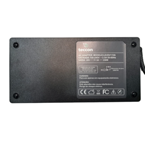 Informações Técnicas: Tensão (Voltagem): 20V Corrente (Amperagem): 11.5A Potência: 230W Dimensões do pino: Retangular estilo USB Comprimento do cabo de energia: 1,50m Condição: Novo Garantia: 06 Meses Marca: Teccon