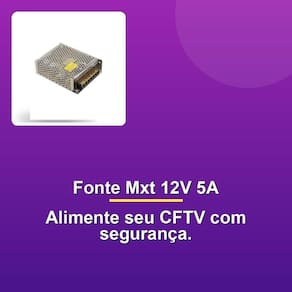 Nossa paixão pela excelência nos distingue, e cada membro da nossa equipe trabalha para oferecer produtos que você possa confiar e se orgulhar de utilizar. Com uma embalagem que contém 100 unidades, essa fonte chaveada é ideal para atender às necessidades de profissionais e empresas que buscam soluções de segurança confiáveis e eficientes. A Fonte Chaveada Mxt Para Cftv 12V 5A Bivolt é uma opção confiável para suas necessidades de segurança. Com entrada de 110-240VAC e saída de 12V/5A, essa fonte chaveada é projetada para atender às demandas específicas de sistemas de CFTV.