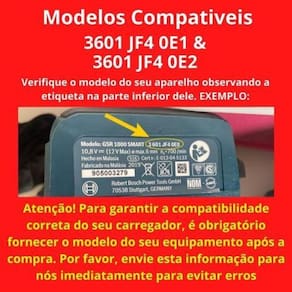 Atenção Verifique o modelo do seu aparelho observando a etiqueta na parte inferior dele Após a compra, envie o modelo da sua parafusadeira para melhorar o atendimento. Atenção para garantir a compatibilidade correta do seu carregador, é obrigatório fornecer o modelo do seu equipamento após a compra. Por favor, envie esta informação para nós imediatamente para evitar erros