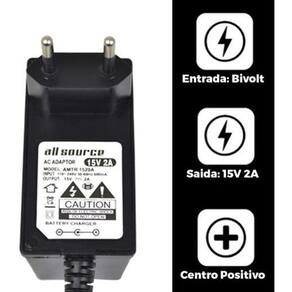 Quais as especificações do produto - input: bivolt 110 - 240v 50-60hz 0.33a - output: 15v - 2.0a positiva - plug: 5.5mm x 2.1mmm - comprimento do rabicho: 2,00 metros - cabo de força: acompanha - medidas da fonte: comprimento = 8,7 cm / largura = 4,8 cm / altura = 2,7 cm - cor: preto - atente-se também ao pino conector, ele deve ser igual ao utilizado no seu aparelho comprimento e largura .