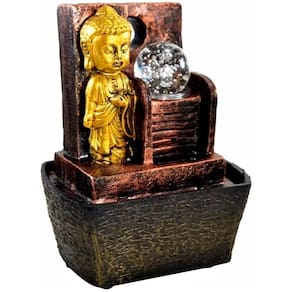 Fonte De Água Cascata Buda Dourado Em Resina Bivolt - Fonte Dágua decorativa