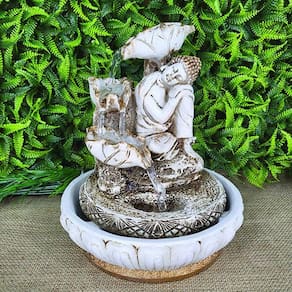 Fonte De Água Cascata Buda SOnhador 01093 Manxs, uma Fonte de Água Fluída que traz beleza à Sua casa, acalma as emoções e reduz o stress. Fonte de tamanho perfeito para você atualizar a decoração do seu cantinho zen. Para potencializar o efeito, é so adicionar pedras naturais de cachoeira ou cristais.Veja esta fonte funcionando no nosso Insta manaomEste modelo tem o Buda Sonhador, nos remetendo à paz, o que é ainda mais deslumbrante com as cascatas em formato de folha, criando 3 quedas de encher os olhos e o coração O agradável som da queda de água traz o relaxamento e a tranquilidade. Além de ser ótimo para manter a umidade do ar em dias quentes. A água é naturalmente poderosa e cheia de energia. Usar esta Fonte de Água em seu espaço, traz sabedoria e a prosperidade aumenta bastante em sua vida e em seu ambiente. Esta é uma fonte no tamanho ideal para sua casa ou escritório. As fontes menores são bem mais fáceis de encaixar em qualquer cantinho da sala, do quarto ou do ambiente de trabalho. A fonte atua como um direcionador de energia. É por isso que ela é indicada para ficar na entrada da sua casa. Dessa forma, a fonte de água leva todas as energias necessárias para dentro do imóvel elevando ainda mais a prosperidade e a riqueza em amplidão para o espaço e todos que vivem naquela casa. Deixe sempre a queda dágua para dentro do ambiente de forma que ela filtre melhor sua energia. A água é um elemento poderoso para renovar as energias da sua casa O sistema desta fonte é bem simples, basta encher de água até cobrir a bombinha. Medidas:Comprimento: 22 cmLargura: 22 cmAltura: 26,5 cmPeso Médio: 2,4 KgMaterial: Resina É incrível e adorável presente, serve para decorar e movimentar a energia da sua casa Venha Cuidar-se e Decorar Na Mana Om Você recebe sua fonte de água E Boas Energias Gratidão, Namastê, Tudo de Ohm