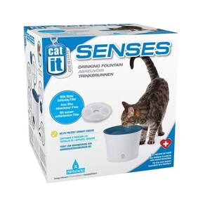 Fonte Catit Design Senses com cartucho amaciador de água, 3L, branca - Water at the Ready: uma fonte icônica criada a partir de anos de pesquisa, know-how, design inteligente e tecnologia comprovada. O sistema de recirculação resfria e areja a água enquanto consome menos de 4 watts, usando menos energia do que uma luz noturna - Design ergonômico: a superfície de bebida é larga e rasa, por isso não sobrecarrega os bigodes sensíveis do seu gato - Tecnologia de filtragem: a água é filtrada de três maneiras pelo filtro de ação tripla. A água potável que a bomba envia de volta é deliciosamente fresca e limpa, tendo sido suavizada e limpa de odores, impurezas, pelos e detritos - Características adicionais: capacidade de água de 3 L (100 fl oz) para água mais limpa do que a maioria dos outros bebedouros para animais de estimação. A fonte é feita de plástico sem BPA e pode ser lavada na máquina de lavar louça. Observação: se a bomba da fonte de água Cat estiver fazendo barulho excessivo, verifique o nível da água, pois provavelmente está baixo