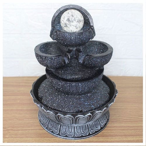 A fonte de água é símbolo de positividade, amor, felicidade e paz. Capaz de auxiliar nas meditações, está ligado à sabedoria e ao equilíbrio. Traz ao ambiente elevação espiritual e paz. Seu ambiente ficará muito tranquilo e sereno, excelente para Feng Shui e energizar ambientes, seja no escritório ou mesmo em casa para atrair boas vibrações nos negócios, relacionamento e vida espiritual.