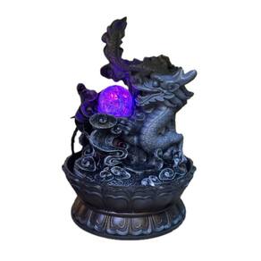 DESIGN MÍSTICO: Fonte decorativa com tema de dragão, representando proteção e poder divino em sua composição artística SIMBOLISMO PROFUNDO: O dragão incorpora elementos de imortalidade e união dos opostos, trazendo significado espiritual ao ambiente DECORAÇÃO VERSÁTIL: Peça ornamental ideal para ambientes internos, criando uma atmosfera única com seu design imponente ELEMENTO ÁGUA: Sistema de circulação de água que proporciona um som relaxante e agradável ao ambiente ARTESANATO DETALHADO: Escultura minuciosamente trabalhada que representa a força e majestade do dragão mitológico