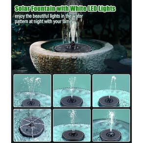 SZMP Fonte de água solar atualizada 100% painel de vidro, fontes alimentadas por energia solar de 3,5 W, bateria embutida 2000 com 7 bicos e 4 fixadores, bomba de fonte solar para banhos de pássaros, - Painéis solares 100% de vidro mais recentes: a fonte solar SZMP adota painéis solares 100% de vidro com transmissão de luz mais forte, pode promover a conversão da luz solar em energia mais forte e tornar o spray de água mais estável e duradouro. A fonte solar usa novos materiais de vidro anticorrosão para garantir que, se for por um longo tempo em ambientes agressivos, não oxidará e ficará branca. Resolva o problema de que a maioria dos painéis solares irá corroer após o uso por um período de tempo - Fonte de água solar de 6 LED: a bomba de fonte solar vem com uma bateria, pode armazenar eletricidade sob luz solar direta durante o dia. A eletricidade armazenada pode fazer com que a fonte solar de banho para pássaros borrife água e acenda automaticamente por até 3-4h à noite. As luzes LED brancas de alto brilho deixam seu jardim mais bonito à noite, permitindo que você veja o spray de água leve exclusivo quando chegar em casa depois de sair do trabalho - 7 estilos de água diferentes: a fonte de água solar tem 7 bocais, pode atender às suas diferentes necessidades de alturas e formas de pulverização de água. A fonte movida a energia solar pode funcionar automaticamente em 3 segundos sob muita luz solar direta, a altura da água do spray em dias ensolarados é de 40 a 60 cm, em dias nublados é de 10 a 20 cm. Mais importante, isso atrairá muitos beija-flores para o seu jardim para beber água e brincar - Proteção de filtro de segurança: Duas novas sondas de detecção são adicionadas à parte inferior da bomba de fonte solar. Quando as sondas detectam que a água é insuficiente, a bomba da fonte ativará automaticamente a função de proteção contra falta de água. Ao mesmo tempo, também oferecemos 3 esponjas de filtro, podem bloquear melhor a sujeira, poeira, folhas e prolongar a vida útil da bomba - Fonte fácil de usar: a energia da bomba de fonte solar vem da energia solar, por isso é muito conveniente. Esta bomba de fonte solar é uma ótima decoração para banho de pássaros, pequeno lago, piscina, tanque de peixes, jardim, aquário e ao ar livre