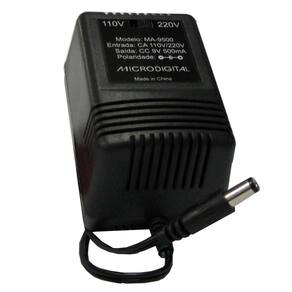 Fonte de Alimentação Bivolt 9v 0,5a MA-9500 Microdigital com chave de seleção de voltagem. A fonte vem selecionada pela fábrica para operar em 220 volts. Indicada para diversos aparelhos compatíveis com as especificações.