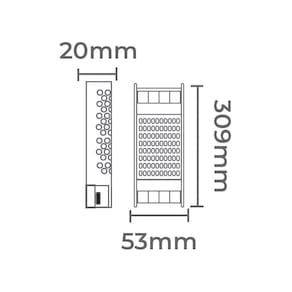 Dimensões AxLxP (mm): 20x309x53