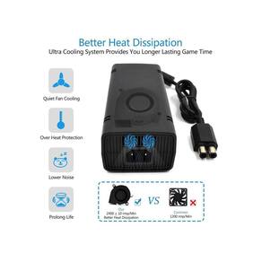 Fonte de alimentação fina Xbox 360 - Substituição NÃO- para xbox 360 slim, um bom adaptador CA de substituição se a fonte de alimentação tiver ficado sem vida. 100-240V Auto Voltage Xbox 360 Slim Power Cord - Pode funcionar com todos os consoles slim oficiais do Microsoft xbox 360, independentemente do xbox dos EUA, UE e Reino Unido, graças à sua tensão automática. Indicador LED: Este Adaptador CA Slim Xbox 360 tem uma luz indicadora LED para mostrar o estado de alimentação. O verde está ligado, o laranja está em espera. Vem com cabo de alimentação dos EUA: Esta fonte de alimentação xbox 360 Slim fornece plugue de parede de 2 pinos dos EUA e o cabo de alimentação CA conecta a fonte de alimentação à tomada de parede. Promessa de alta qualidade: A fonte de alimentação fina do Xbox 360 tem um interruptor IC especial dentro para evitar sobrecarga, superaquecimento, descarga excessiva, sobrecorrente, curto-circuito, não se preocupe com a duração da bateria.