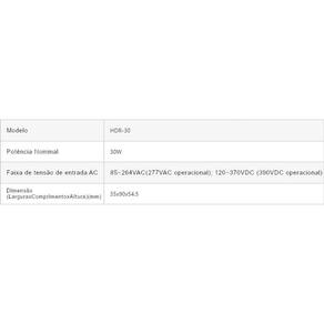Fonte de alimentação mean well modelo hdr-30-12 Fabricante: mean well Modelo: hdr-30-12 Tipo: fonte chaveada ac/dc regulada para montagem em trilho din Potência nominal: 30 w Tensão de saída: 12 v dc Corrente de saída nominal: 2 a Faixa de ajuste da saída: 10,8 v a 13,8 v Tensão de entrada: 85 a 264 vac / 120 a 370 vdc Frequência de entrada: 47 63 hz Ripple & noise máx. : 120 mv p-p Eficiência típica: até 88% Regulação de linha: 1% Regulação de carga: 1% Tempo de hold-up: 60 ms típico em 230 vac Consumo sem carga: 0,3 w Proteções integradas: sobrecarga, curto-circuito, sobretensão, sobretemperatura Tipo de montagem: trilho din ts-35 / 7,5 ou 15 Classe de isolamento: classe ii isolamento entre entrada e saída Rigidez dielétrica: 3 kvac entrada para saída Grau de proteção: ip20 Temperatura de operação: -30 c a +70 c Umidade de operação: 20 90% rh sem condensação Dimensões: 35 mm largura 90 mm altura 54,5 mm profundidade Peso: 130 g Certificações: ul, ce, eac, tuv, cb Conformidade emc: en55032 classe b Todas as dúvidas podem ser auxiliadas pós-venda. Temos técnico disponível para auxiliar e ajudar com dúvidas técnicas ou de instalações. : 90 dias. As imagens do anúncio são meramente ilustrativas. Podendo haver variações de cor e tamanho do produto anunciado, a depender da disponibilidade em . Marca: Não Informado