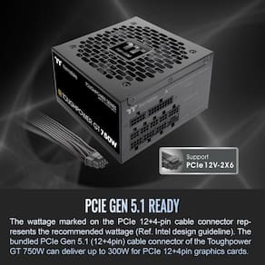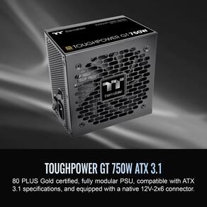 Thermaltake Fonte de alimentação padrão Toughpower GT 750W ATX 3.1; 80 Plus Gold Efficiency; Smart Zero Fan; conector PCIe 5.1 nativo de 300W; PS-TPT-0750FNFAGU-3; garantia de 5 anos