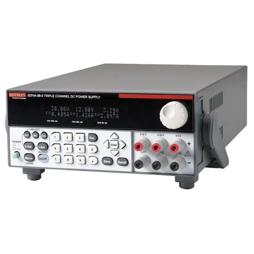 A fonte de alimentação DC de três canais, modelo 2231A-30-3 da Keithley, possui uma potência total de 195W, proporcionando a energia necessária para alimentar diversos circuitos e dispositivos em ambientes de bancada. Dois canais podem fornecer até 30V a 3A cada, enquanto o terceiro canal fornece até 5V a 3A. Com versatilidade e facilidade de uso, o 2231A-30-3 oferece um desempenho excelente, tornando-se uma única fonte de alimentação DC para suas necessidades de bancada.