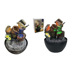 Fonte decorativa dois passaros e jarro de mesa e chão resina