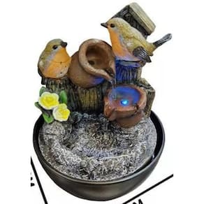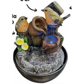 Deixe sua casa muito mais linda com esta fonte de água bivolt que já inclui a bomba de água. Modelo com dois pássaros e jarro.