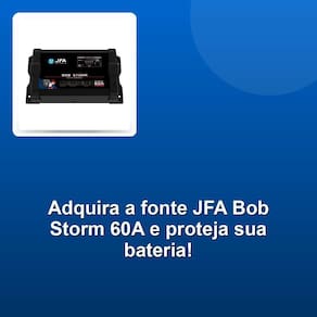 Fonte E Carregador De Bateria Jfa Automotivo Bob Storm 60a A Fonte e Carregador de Bateria JFA Automotivo Bob Storm 60A é a solução ideal para quem busca eficiência e potência. Com entrada bivolt automática de 90 a 140Vac ou 170 a 240Vac, adapta-se facilmente a diferentes voltagens. Seu consumo nominal é de 600W, podendo chegar a 900W em uso dinâmico. A função BOB-STORM oferece uma potência nominal de 40 Amperes, com capacidade dinâmica de 60 Amperes por 2 segundos, garantindo um desempenho robusto. Este carregador é perfeito para quem precisa de confiabilidade e potência em um único produto. A Fonte e Carregador de Bateria JFA Automotivo Bob Storm 60A é a solução ideal para quem busca eficiência e potência. Com entrada bivolt automática de 90 a 140Vac ou 170 a 240Vac, adapta-se facilmente a diferentes voltagens. Seu consumo nominal é de 600W, podendo chegar a 900W em uso dinâmico. A função BOB-STORM oferece uma potência nominal de 40 Amperes, com capacidade dinâmica de 60 Amperes por 2 segundos, garantindo um desempenho robusto. Este carregador é perfeito para quem precisa de confiabilidade e potência em um único produto. Marca: Não Informado