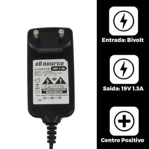 Quais as especificações do produto - input: bivolt 110 - 240v 50-60hz 0.33a - output: 19v - 1.3a positiva - plug: pino 6.4mm x 4.4mm - comprimento do rabicho: 2,00 metros - cabo de força: acompanha - medidas da fonte: comprimento = 8,7 cm / largura = 4,8 cm / altura = 2,7 cm - cor: preto - atente-se também ao pino conector, ele deve ser igual ao utilizado no seu aparelho comprimento e largura .