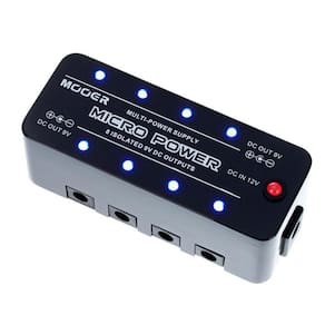 Fonte Mooer Micro Power Para 8 Pedais 9V Possui corrente 9V DC estável com alta performance, 8 Saídas independentes com circuito de proteção. Se uma saída falhar, as demais continuam funcionando normalmente. Cada saída fornece até 300mA de corrente, o suficiente para alimentar praticamente qualquer pedal. 8 leds indicam o status de funcionamento no escuro Características: Entrada: 12V DC 2A Saída: 8x 9V DC 300mA 4 cabos de 46cm (para alimentação dos pedais) 4 cabos de 61cm (para alimentação dos pedais) Acompanha tiras aderentes para fixação Dimensões: 93,5 x 42 x 52 mm Adquirimos e comercializamos somente produtos originais das importadoras oficiais das marcas. Garantia: 3 meses pelo Importador / Fornecedor