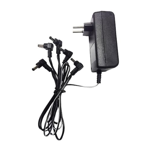 Fonte de alimentação com saída estabilizada, permite ligar até 5 pedais ao mesmo tempo.