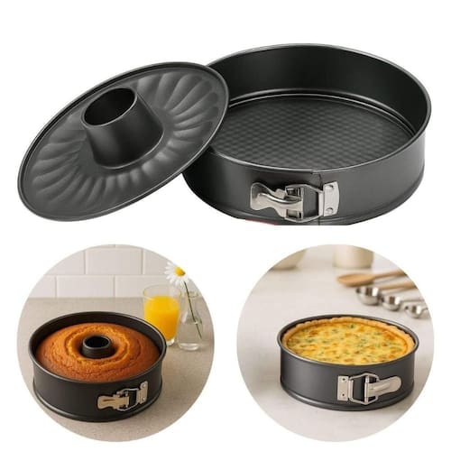 A forma conta com trava em aço inoxidável e 2 fundos removíveis, que facilitam o desenforme e garantem resultados impecáveis.