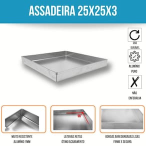 Forma assadeira quadrada para brownie 25x25x3 alumínio Forma assadeira baixa para brownie e outros doces
