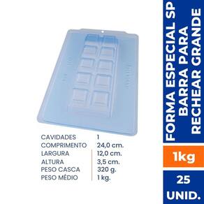 Forma especial com silicone (3 partes), ideal para produção de chocolates com muito mais praticidade e precisão. Possui uma “marquinha” indicando a quantidade necessária de chocolate, levando para geladeira uma única vez. Ela proporciona uma casca uniforme e um acabamento perfeito sempre com o mesmo peso. Abaixo mais informações do produto.