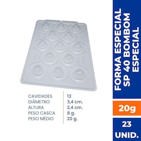 Forma especial com silicone (3 partes), ideal para produção de chocolates com muito mais praticidade e precisão. Possui uma “marquinha” indicando a quantidade necessária de chocolate, levando para geladeira uma única vez. Ela proporciona uma casca uniforme e um acabamento perfeito sempre com o mesmo peso. Abaixo mais informações do produto.