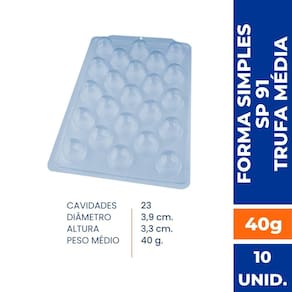 Forma Simples, ideal para produção de chocolates com muita praticidade. As Formas foram desenvolvidas para agilizar e facilitar o trabalho na hora de fazer bombons, trufas, ovos e outros docinhos, fácil de desenformar e ficam com um acabamento perfeito.
