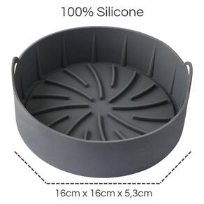 Forma de silicone redonda para fritadeira elétricaForma de silicone ideal para fritadeiras elétricas para fazer frituras e cozimentos.Feita de silicone ela é antiaderente e é mais fácil de se lavar. Suporta até 230 graus celsius. Possui um relevo de grades em sua base que impede que acumule gordura embaixo de seu alimento.Benefícios:1. Fácil de , o melhor acessório de fritadeira para o problema que é pesado para a cesta depois de usar.2. Circulação de ar, os caminhos do ar aquecido, estrutura de circulação de ar de 360 graus na parte inferior.3. Panela de silicone ecológica e reutilizável em vez de outros forros de fritadeira. Serve para fritadeiras de 20 cm.4. Material de silicone de grau alimentício confiável, antiaderente, não tóxico, seguro e durável de usar.5. Não precisa se preocupar em queimar com material de silicone resistente a altas temperaturas -40Celsius +220Celsius .Especificações:- material: silicone- dimensões: 16 x 16 x 5,3 cm- peso: aprox. 100g- formato: redondo- cor: cinzaAtenção:1. É proibido usar uma chama aberta para aquecer silicone.2. Não use lâminas incisivas para cortar a cesta de silicone.
