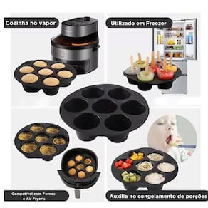 Utensílio de cozinha projetado para moldar, cozinhar, assar e congelar alimentos, como bolinhos, cupcakes, muffins, sorvetes, porções de comidas para bebês, e tudo que você desejar! Sua maior vantagem é a multifuncionalidade, suportando temperaturas de -40°C até 230°C, utilizada em fornos tradicionais, air fryers, congeladores, freezers e geladeiras. Indispensável na sua cozinha e na preparação do seu prato favorito, feita de silicone resistente e super maleável, o que facilita desenforma-lo e higieniza-lo após o uso. Características Principais: - Redonda com 7 divisórias redondas; - Silicone resistente e maleável; - Suporta temperaturas de -40°C até 230°C; - Utilizada em fornos e congeladores; - Multifuncional e prática; - Fácil de lavar. Medidas: Forma: 4,2 X 21 X 21 Centímetros (A X L X P). Divisórias: 4,1 x 6 Centímetros (A X L). ATENÇÃO: Envio conforme disponibilidade em estoque ! Não sendo possível escolher a cor do produto. (vermelho, cinza, preto) Marca: Não Informado