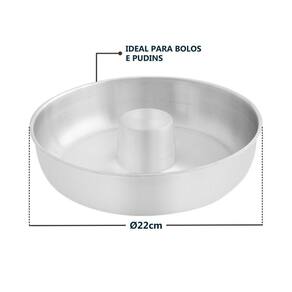 Conheça a Forma de Alumínio com Centro 22 cm Baixa, um utensílio indispensável para os amantes da confeitaria. Este produto, projetado com um design funcional e inovador, é ideal para otimizar o preparo de bolos e pudins, elevando sua experiência na cozinha a um novo patamar.