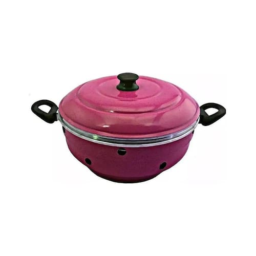 Forma multi uso 5 em 1, em alumínio colorido na cor rosa. Forma para Bolo, Pudim, Pizza e Pão de Queijo, Grelha para Churrasco, tudo à banho maria. Bastando colocar água no fundo, Isso representa saúda, qual seja, menos gordura e mais sabor. Praticidade a toda prova, com múltiplas funções (assar pizzas, bolos, pudim e fazer grelhados ou churrasco) se torna indispensável na sua cozinha. Economize tempo, economize gás. Ideal para uma alimentação saudável e sabor apurado.