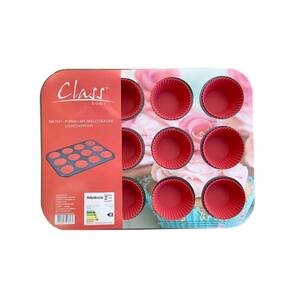 - Largura: 35 cm - Comprimento: 26,5 cm - Altura: 3 cm - Diâmetro da cavidade: 6,5cm - Quantidade de cavidades: 12 - Material: Aço carbono - Marca: Class Home - Conteúdo: 01 (uma) Assadeira + 12 (doze) Forminhas de Silicone.