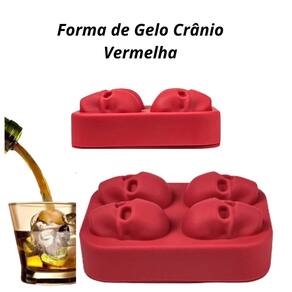 Forma para gelo em Silicone, com capacidade para 4 cubos de gelo forma de caveira.