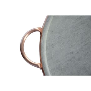 A forma de Pedra Sabão vai deixar suas pizzas ainda mais gostosas. Elas propagam o calor de forma uniforme e eficiente, assam a pizza por igual e as mantem quente por mais tempo, mesmo após retirar do forno.Duráveis e decorativas as formas de Pedra Sabão levam charme e requinte para sua cozinha e mesa. Leve o sabor da comida mineira para sua casa!Para uso somente em fornos. Não deve ser usada na chama direta.Medidas:- Diâmetro externo: 32 cm- Diâmetro interno: 30 cm- Alça a alça: 38 cm- Peso: 2.5 kgMatéria prima- Pedra Sabão e Cobre** Os produtos de Pedra Sabão devem passar por um processo de cura, que sela e aumenta a resistência da pedra. O processo é simples e leva apenas alguns minutos. Enviaremos instruções de como curar seu produto. Com a cura a pedra escurece, ficando num tom próximo ao preto.