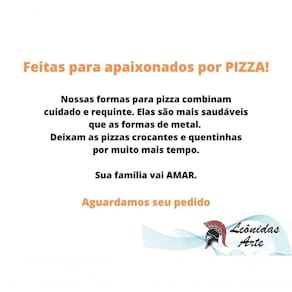 FORMAS DE PIZZA DE PEDRA SABÃOQue tal reunir a família e amigos para compartilhar bons momentos acompanhados de deliciosas pizzas!?Estudos científicos mostram que cozinhar em Formas assadeiras de Pedra Sabão é benéfico para a saúde, ao contrário das assadeiras de metal que estão associadas aos maus de Parkinson e Alzheimer.As formas de Pedra Sabão vão deixar suas pizzas ainda mais gostosas. Elas propagam o calor de forma uniforme e eficiente, assam a pizza por igual e as mantem quente por mais tempo, mesmo após retirar do forno.Duráveis e decorativas as bandejas de Pedra Sabão levam charme e requinte para sua cozinha e mesa.Leve o sabor da comida mineira para sua casa!PARA USO EM FORNOS! Não deve ser usada na chama direta.Medidas:- Diâmetro externo: 37 cm- Diâmetro interno: 35 cm- Alça a alça: 44 cm- Peso: 4 kgMatéria prima- Pedra Sabão e Inox