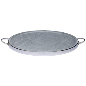 A Forma de Pedra Sabão vai deixar suas pizzas ainda mais gostosas. Elas propagam o calor de forma uniforme e eficiente, assam a pizza por igual e as mantem quente por mais tempo, mesmo após retirar do forno.Duráveis e decorativas as formas de Pedra Sabão levam charme e requinte para sua cozinha e mesa. Leve o sabor da comida mineira para sua casa!Para uso somente em fornos. Não deve ser usada na chama direta.Medidas:- Diâmetro externo: 37 cm- Diâmetro interno: 35 cm- Alça a alça: 44 cm- Peso: 4 kgMatéria prima- Pedra Sabão e Cobre** Os produtos de Pedra Sabão devem passar por um processo de cura, que sela e aumenta a resistência da pedra. O processo é simples e leva apenas alguns minutos. Enviaremos instruções de como curar seu produto. Com a cura a pedra escurece, ficando num tom próximo ao preto.