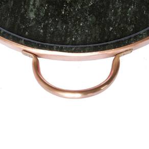 A Forma de Pedra Sabão vai deixar suas pizzas ainda mais gostosas. Elas propagam o calor de forma uniforme e eficiente, assam a pizza por igual e as mantem quente por mais tempo, mesmo após retirar do forno.Duráveis e decorativas as formas de Pedra Sabão levam charme e requinte para sua cozinha e mesa. Leve o sabor da comida mineira para sua casa!Para uso somente em fornos. Não deve ser usada na chama direta.Medidas:- Diâmetro externo: 37 cm- Diâmetro interno: 35 cm- Alça a alça: 44 cm- Peso: 4 kgMatéria prima- Pedra Sabão e Cobre