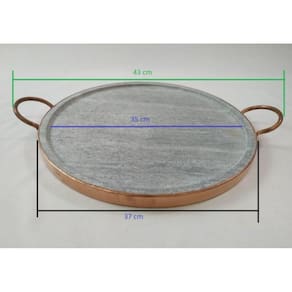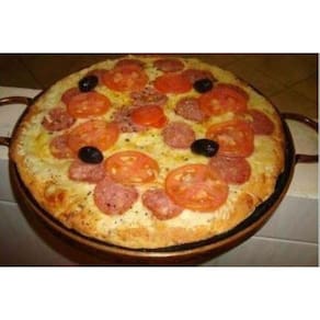 Retém o calor por longo tempo deixando sua pizza mais crocante.Medidas 35 cm de diâmetro (interno) 37 cm externo e 43 cm com alças Observação:* As formas precisas ser curada para ser usada o que é feito apenas uma vez, juntamente com a mercadoria irá um folheto explicativo. Todo material em pedra sabão-após curado muda de cor ficando com uma tonalidade mais escura.
