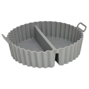 Forma de silicone com divisórias e alças para Air Fryer. Antiaderente, flexível e resistente ao calor. Permite assar 2 tipos de alimentos diferentes simultaneamente. Livre de BPA.Tipo