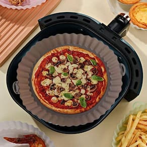 Forma Bandeja de Silicone Flexível Protetora Reutilizável Antiaderente para Fritadeira Elétrica Air FryerCom a Bandeja de Silicone as manchas de óleo não ficam impregnada na sua fritadeira elétrica, facilitando a limpeza e aumentando a vida útil da peça. As bandejas de silicone para fritadeira são uma excelente alternativa aos revestimentos de papel descartáveis. Elas são duráveis, assim você economiza dinheiro e ainda ajuda o meio ambiente. Evite de uma vez por todas que resíduos de alimentos ou óleo entrem na Air Fryer e evite que os alimentos grudem nela. As Bandeja de silicone são totalmente laváveis na máquina de lavar louça e ajudam você a economizar seu tempo e energia após o cozimento. São um acessório de cozinha indispensável para Air Fryer, panelas a vapor, fornos, panelas instantâneas e micro-ondas, é uma ótima maneira de ajudá-lo a assar. A Bandeja Siliconada é reutilizável, feita de silicone de qualidade para produtos alimentícios, possui material macio, boa resistência ao calor e temperatura de operação variando de 20°C a 240°C.Importante:- Imagens meramente ilustrativa- Envio de cor de acordo com disponibilidade em estoqueBenefícios:- Compatível com todos os modelos de air fryer- Preserva a vida útil e o bom estado da air fryer- Impede a proliferação de Bactérias- Não retém cheiro, não mancha e não deforma- Resistente a alta temperatura- Antiaderente, anti-chamas, não abrasivo- Praticidade, leve direto a mesa após o preparo- Fácil de limpar, reutilizávelDimensões aproximadas:- Altura: 5 cm- Diâmetro: 15 cm- Peso: 57gMaterial:- SiliconeItens incluso:- 1 Panela Forma Bandeja de Silicone Reutilizável Antiaderente