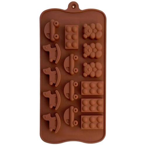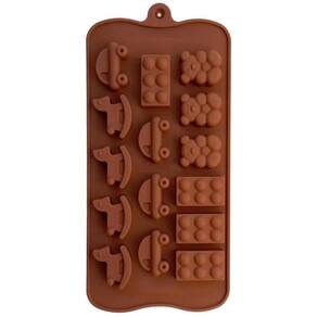 Descrição: Leve um toque lúdico às suas criações com essa forma de silicone inspirada em brinquedos infantis Com moldes de cavalinhos de balanço, ursinhos fofos, Carrinhos e blocos de montar, essa forminha é perfeita para fazer chocolates, balas, gelatinas, sabões artesanais ou cubos de gelo super criativos. Feita em silicone flexível e resistente, ela facilita o desenforme e a limpeza, sendo ideal para festas temáticas, lembrancinhas ou momentos de diversão na cozinha com as crianças.