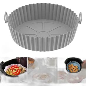 Essa forma é ótima para trazer ainda mais praticidade no preparo dos alimentos, seja na air fryer, microondas ou forno. Produto super resistente e maleável, feito em silicone livre de bpa. O forro é reutilizável e fácil de limpar, não tóxico e antiaderente. Indispensável para os preparos diários na cozinha. Suporta temperaturas de -40ºc até 230ºc, capacidade de 1,5 litros e é compatível com freezer e microondas.