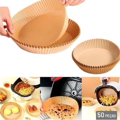 Forma descartável de air fryer fritadeira pegador 50un 100 unidades papéis protetores descartáveis para air fryer - mantém a sua air fryer sempre limpa - não gruda sujeiras - material a prova dágua, a prova de óleo, antiaderente e 100% saudável - boa resistência ao calor, suporta até 220 - pronto para usar - pode ser utilizado em diversos eletrodomésticos: air fryer, micro-ondas, forno elétrico e a gás, etc... Acabe com a gordura e oleosidade na sua air fryer, após o uso