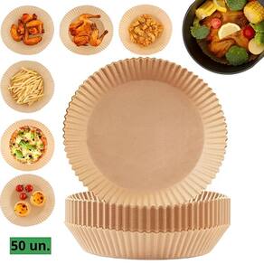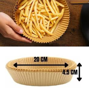 Forma descartável antiaderente de papel para air fryer e fritadeira elétrica. Diâmetro de 20 cm e altura de 4,5 cm. Resistente ao calor e projetada para suportar altas temperaturas, garantindo um cozimento uniforme e perfeito. Evita que os alimentos grudem e facilita a limpeza.Tipo