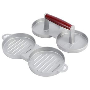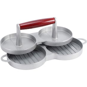 Forma Hambúrguer Dupla Prensa Modeladora Alumínio Cabo de Madeira