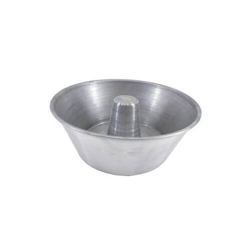 - Forma de pudim com tubo de alumínio. - Diâmetro de boca: 12,5 cm. - Altura: 6 cm. - Fundo: 8 cm. - Capacidade volumétrica aproximada: 360 ml.
